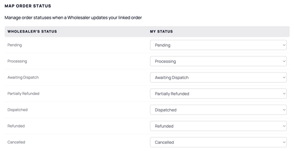 Map Order Status: Manage order statuses when a wholesaler updates your linked order.