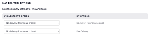 Map Delivery Options: Manage delivery options for each wholesaler to ensure accurate shipping setup.