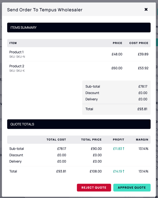 If set to manual, a 'Send Order to Wholesaler' button will appear on the order edit page. You can review profits before confirming. If the quote isn’t favourable, you can regenerate it later.