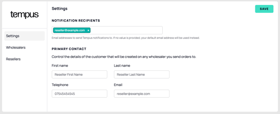 Under Tempus > Settings, make sure you add your personal information such as your email address where you, as a reseller, will receive invite notifications.