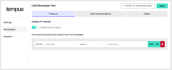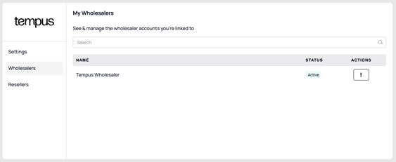 To start selling wholesaler products, head to Tempus > Wholesalers > [Your Wholesaler].